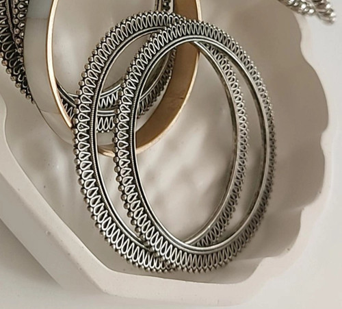 انگشتر روکش نقره هندی طرح ریسه دوعددی